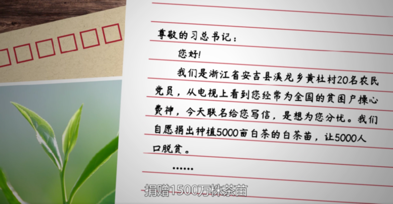 以AE特效制作“展信”“讀信”效果,生動展現總書記回信或村民寫信的具體內容,呼應主題,不斷強化受眾對“信”的深層理解,認同“信”的內涵,更好地融入故事當中。 農民朋友在給總書記的信中,分享豐收的喜悅、產業的發展、生活的幸福,一字一句都飽含感恩之情;總書記在給農民朋友的回信里,裝滿期待、裝滿囑咐,更裝滿祝福。通過書信這一傳統載體,總書記與農民朋友談收成、聊產業、嘮家常,勉勵大家為了美好生活接續奮斗;農民朋友也把總書記的殷殷牽掛和諄諄囑托牢牢刻在心里,轉化為干事創業的不竭動力。 《總書記,展信佳》以“信與信交流,心與心貼近”為出發點,“信”的元素貫穿作品始終,形式新穎、別出心裁。從片頭設計、人名條包裝到海報制作、版面設計,“信”出現在作品的每一個角落,跳出各種媒介限制,展現濃濃深情,讓受眾印象深刻。如每期視頻中以特效制作的“展信”“讀信”效果,用圖片和文字展現總書記回信或村民寫信的具體內容,主題鮮明、畫風統一,不斷強化受眾對“信”的深層理解,認同“信”的內涵,把總書記的人民情懷春風化雨般融入故事中。 脫貧、產業、共富——小切口小故事折射大主題大情懷 黨的十八大以來,我國“三農”領域取得歷史性成就、發生歷史性變革,特別是完成了脫貧攻堅、全面建成小康社會的歷史任務,實現了第一個百年奮斗目標。這是中國共產黨和中國人民團結奮斗贏得的歷史性勝利,是彪炳中華民族發展史冊的歷史性勝利。 移動互聯網時代,受眾對內容的需求發生巨大變化,傳播關系正從“一對眾”轉向以互動分享為主要特征的分眾化、差異化傳播。面對“三農”新聞輿論的新形勢、新特點,媒體必須與時俱進,深入推進內容創新,努力提升內容品質,豐富內容表達,拓展內容呈現,使內容生產更加適應時代要求,更加契合受眾需求,讓新聞產品不僅有思想、有品質,更有溫度、有影響。 在碎片化收看、注重互動感受的傳播新環境下,更接地氣、敘述方式更有網感、更具真情實感的短視頻更易引發受眾廣泛持續的關注,頻頻“出圈”。面對脫貧攻堅、現代農業、鄉村產業振興和共同富裕等諸多“三農”大主題,創作團隊尋找小切口,選取普通人的小故事,用小情節反映大時代,挖掘老話題里的新氣象。 如《一場關于白茶的“雙向奔赴”》一集,聚焦浙江安吉縣黃杜村村民捐贈白茶苗幫助西部地區共同富裕的故事,展現東西部扶貧協作的累累碩果。恰逢四川青川縣白茶種植后的首次大規模采摘,村民飲水思源,將頭一批白茶作為“感恩茶”贈給“浙江親人”。短視頻從東西部兩位村支書的手機語音通話開始,講述收到白茶、品嘗白茶及在總書記關心下捐贈、種植白茶的故事,最后以手機語音通話結束,黃杜村村支書還不忘給出應對干旱的技術指導。故事不長,人物也不多,但講得很詳細、很動情,不僅能讓受眾感受到東西部協作科學的運行機制,更能體會到機制背后的人情味。