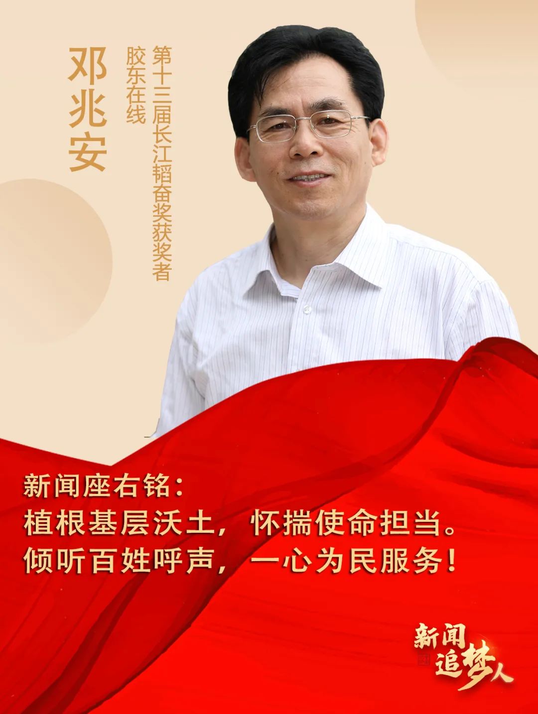 1990年10月5日,鄧兆安(右)在田間地頭采訪中國作物栽培研究會玉米分組組長鄭培堯。 “只有深深地扎下根,才能結出累累的果實!”這是我在40余年新聞生涯中深刻感悟到的。從中學時代的“實習記者”到回鄉務農的“土記者”,從商業局的“業余通訊員”到縣委宣傳部的“專職報道員”,從煙臺電視臺的“新聞人”到膠東在線的“新媒體人”。不管歲月如何變遷、媒體形態如何嬗變、自身角色如何轉換,在自己心靈深處扎下的“黨字當頭,一切為民”的根和魂始終未變。 2003年5月,在自己擔任膠東在線總編輯第二年的春天,就大膽地策劃上線了《網上民聲》欄目,搭建起了黨委政府與群眾網上溝通交流的“連心橋”,開創了中國網絡問政的先河,一舉摘得第19屆中國新聞獎名專欄一等獎,其經驗入選中宣部《宣傳思想文化工作案例選編》。2011年11月,針對廣東發生的“小悅悅事件”,抓住“煙臺最美女孩”刁娜以身擋車的感人事跡,我率領團隊迅速創意組織了“愛傳百城——尋找最美的你”活動,“最美之花”瞬間開遍了大江南北。以此活動制作的專題《接力尋美 溫暖中國》獲得中國新聞獎一等獎,我還作為首位網絡媒體代表在頒獎報告會上做了典型發言。第二年,“愛傳百城”被國家網信辦納入迎接黨的十八大重要網絡文化活動。2014年至2016年,我本人先后榮獲第13屆長江韜奮獎、全國文化名家暨“四個一批”人才等榮譽稱號。2016年11月,我還與其他中國新聞獎、長江韜奮獎獲獎者代表一起受到中央領導同志的親切會見,成為我終生難忘的幸福時刻。