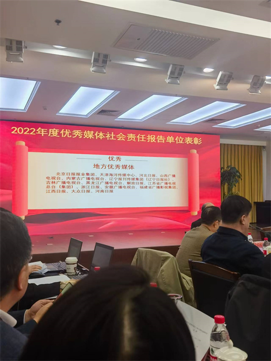 表彰會(huì)現(xiàn)場(chǎng) 2023年12月27日,中國(guó)記協(xié)對(duì)2022年度優(yōu)秀媒體社會(huì)責(zé)任單位進(jìn)行表彰,福建省廣播影視集團(tuán)位列被表彰的地方媒體之一。 《2022年度福建省廣播影視集團(tuán)社會(huì)責(zé)任報(bào)告》突出省廣電集團(tuán)作為省級(jí)黨媒宣傳主陣地、主力軍的作用和特色,集團(tuán)制定習(xí)近平新時(shí)代中國(guó)特色社會(huì)主義思想研究中心宣傳基地建設(shè)實(shí)施方案,推出《閩寧紀(jì)事2022》《知行田野?科技特派員》《木蘭溪》《信仰的力量》等重點(diǎn)項(xiàng)目。特別是在習(xí)近平總書(shū)記來(lái)閩考察一周年之際,集團(tuán)全平臺(tái)聯(lián)動(dòng),立體式傳播,生動(dòng)展現(xiàn)福建牢記囑托,奮力譜寫(xiě)全面建設(shè)社會(huì)主義現(xiàn)代化國(guó)家福建篇章的壯麗畫(huà)卷。東南衛(wèi)視《中國(guó)正在說(shuō)》推出“中國(guó)夢(mèng)”十周年系列節(jié)目,被列入國(guó)家廣電總局首批“創(chuàng)新理論傳播工程”電視理論節(jié)目扶持項(xiàng)目。集團(tuán)多層次、全方位、全渠道發(fā)揮融合傳播的強(qiáng)大影響力,讓習(xí)近平新時(shí)代中國(guó)特色社會(huì)主義思想宣傳更好地入耳、入腦、入心,為立心鑄魂凝聚強(qiáng)大精神力量。